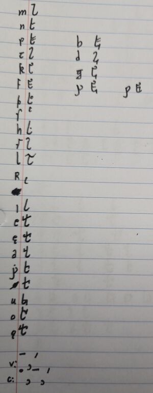 - Noun endings are reduced significantly, the "-ʀ" (modern "-j") endings are often all reduced to a simple "j", often with a strike through it, like "ɟ".